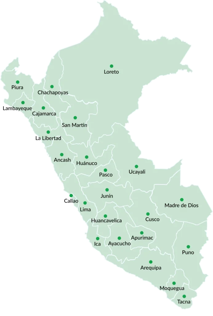 Estamos presentes en todo el Perú, llevando nuestros servicios a cada rincón del país.