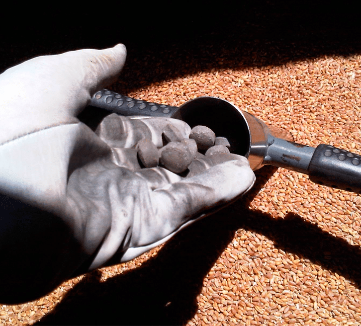 Aplicamos tratamientos con fosfina para controlar plagas en granos, alimentos y otros productos almacenados.