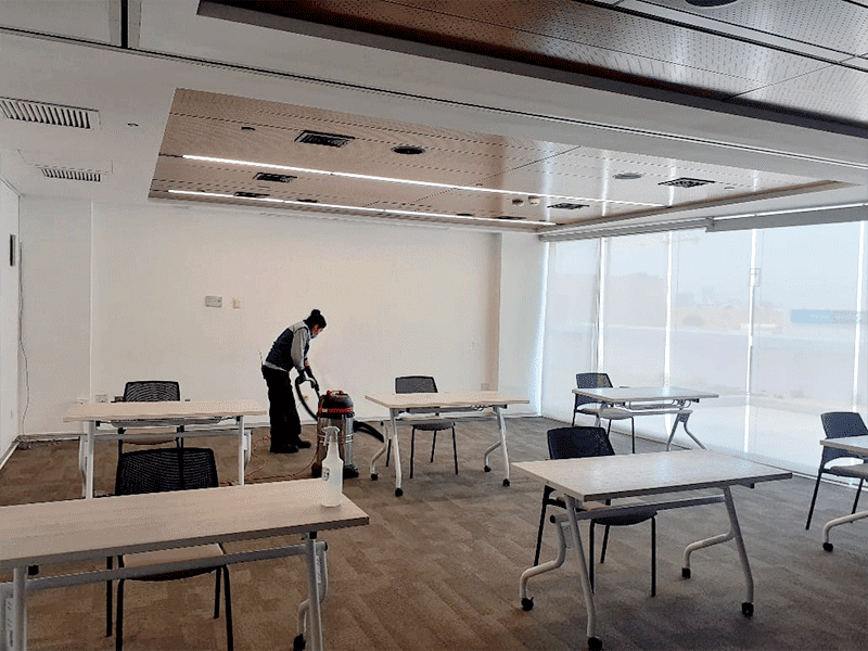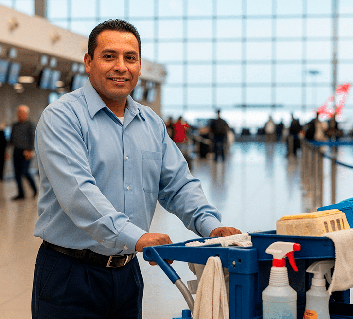 Ejecutamos planes de limpieza continuos en terminales, salas de embarque, oficinas y zonas de tránsito de pasajeros.